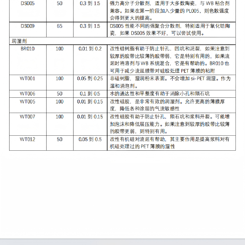 助剂-MW1020 用于陶瓷粉体造粒/流延/灌注成型